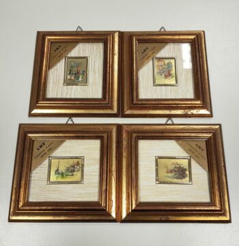 • Set di 4 Quadretti in Miniatura Cromolitografica con Cornice in Legno