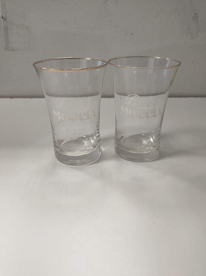 2 Bicchierini Pubblicitari in Vetro “Bitter Moccia” Vintage Anni ’70 in Buone condizioni come da foto