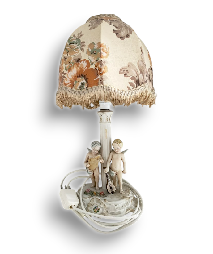 Abat-Jour in Porcellana con Copertura Tessile Floreale Vintage Anni ’80 in Buone condizioni come da foto