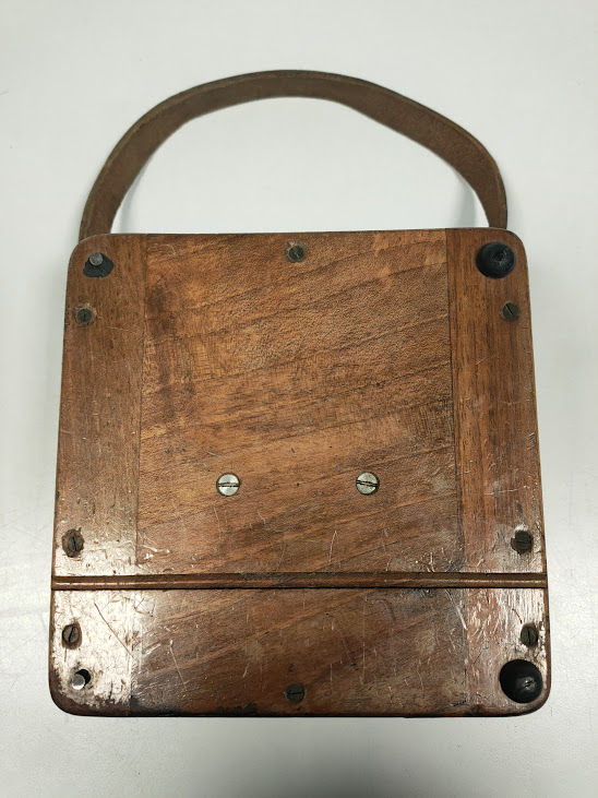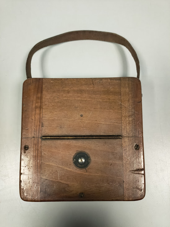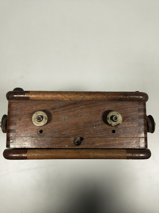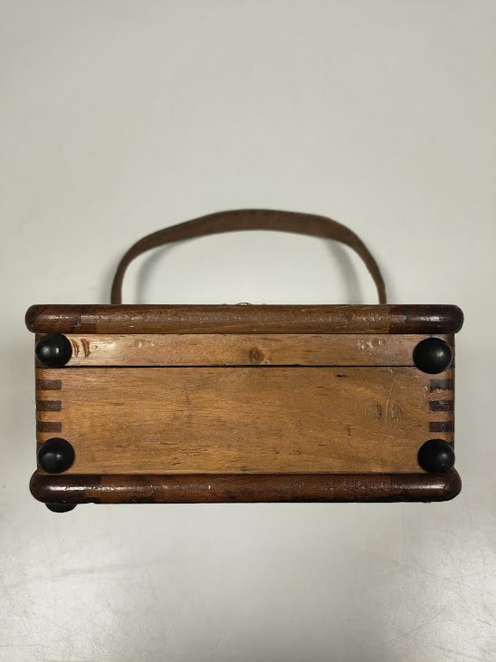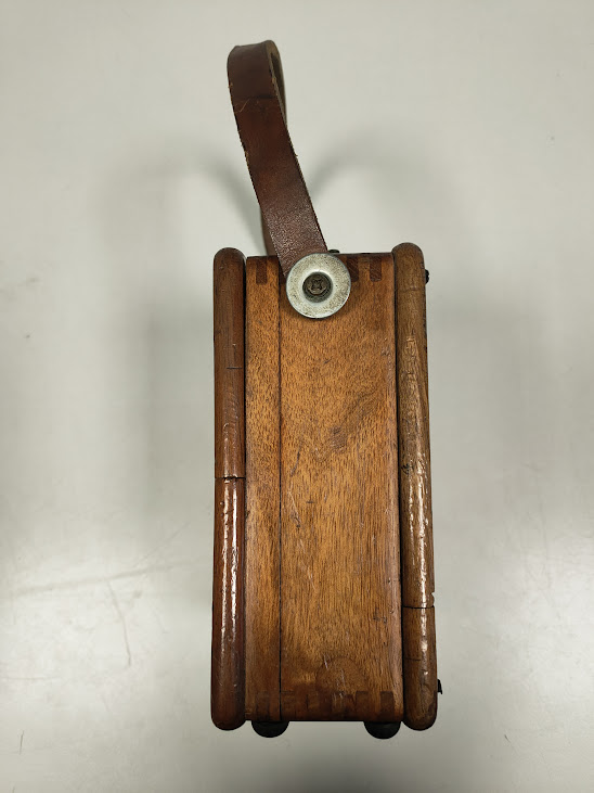 Alloggiato in una scatola di legno con maniglia in pelle