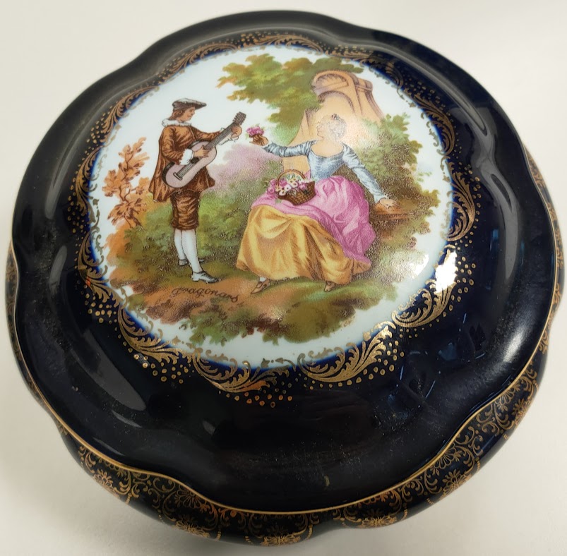 Cofanetto Portagioie Blu Cobalto Dorato con Oro 22 K Limoge Florance