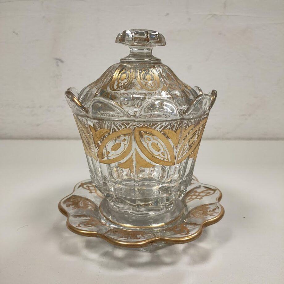 Contenitore di Caramelle, Confetti Realizzato in Vetro  con Decorazioni di Color Oro Vintage Anni ’60 in Ottime condizioni come da foto