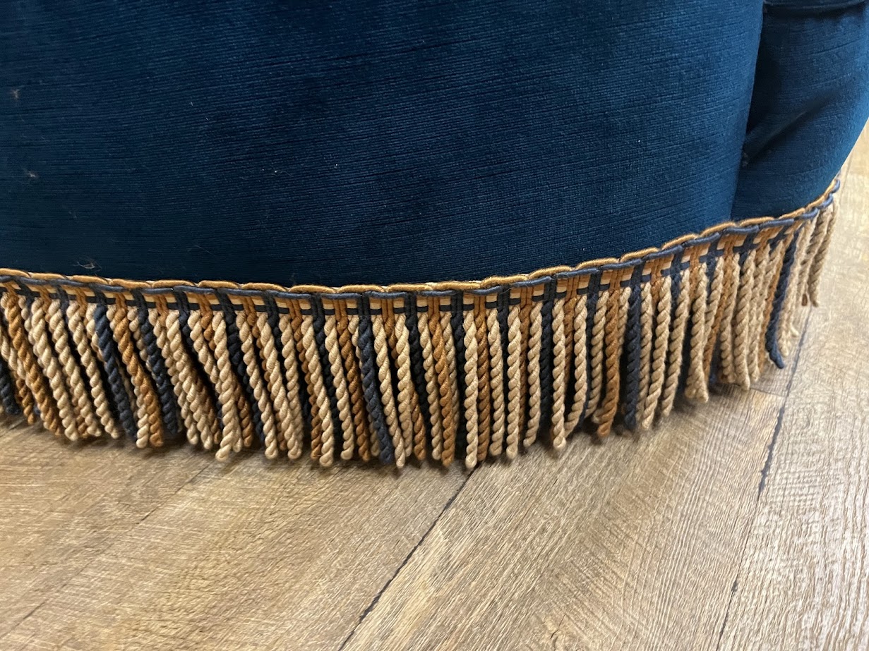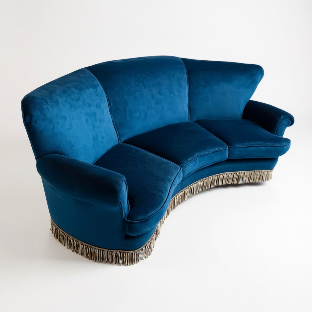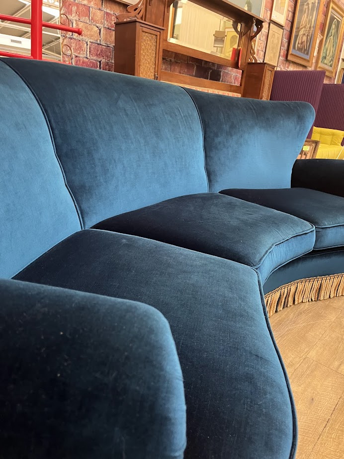 Divano in legno a velluto blu produzione ABV Arredamenti