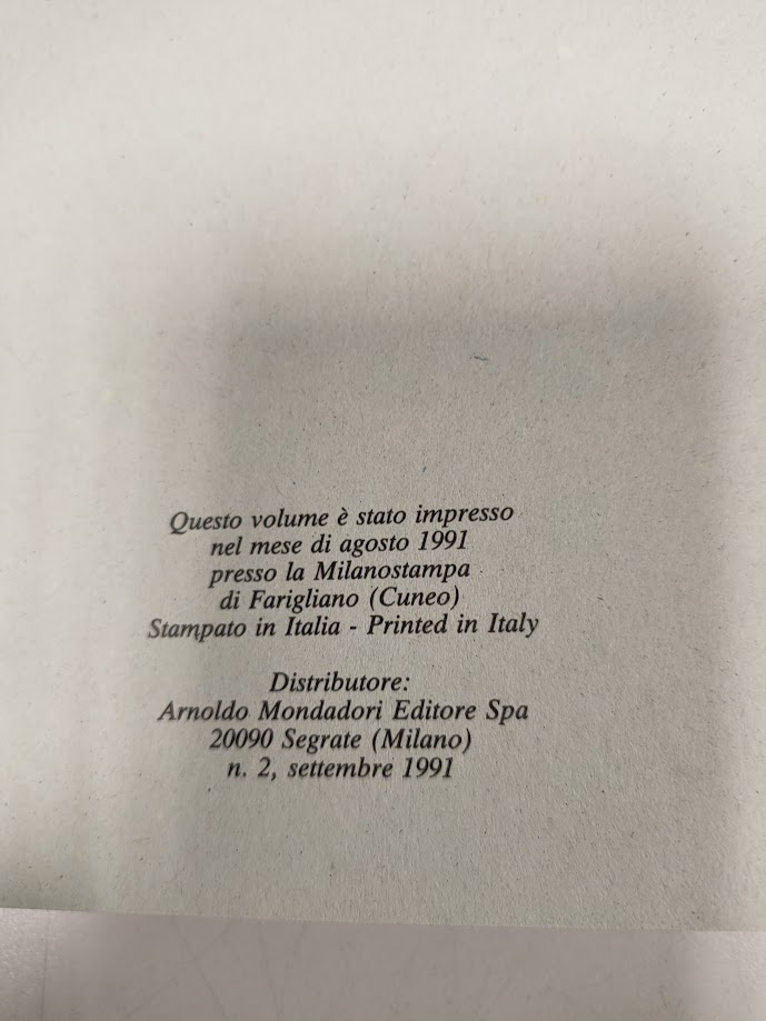 Nessun strappo o segno a penna o matita sia in copertina sia all’interno che possa compromettere la lettura del testo
