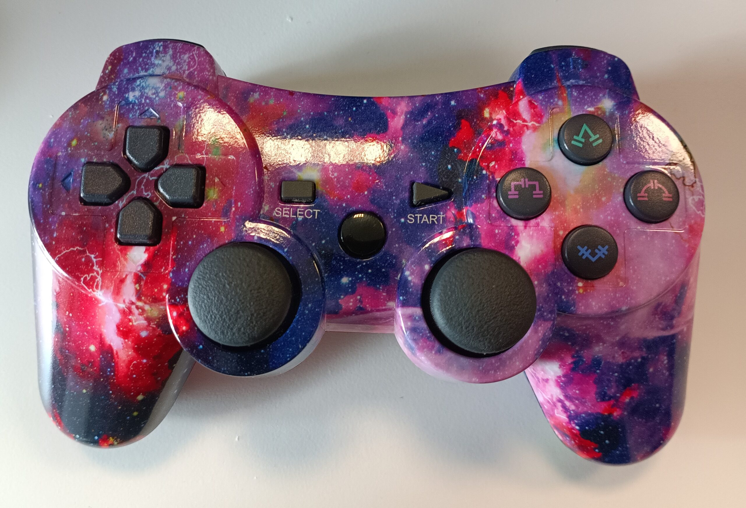 joystick playstation 3 multicolore con motivo spaziale + cavo di ricarica