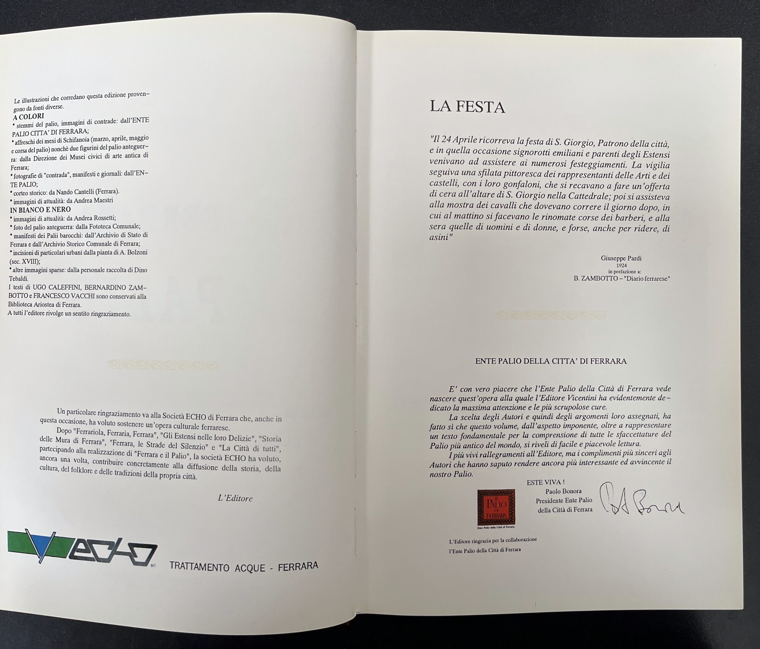 Libro “Ferrara e il Palio – Storia, Poesia in dialetto, Attualità”.