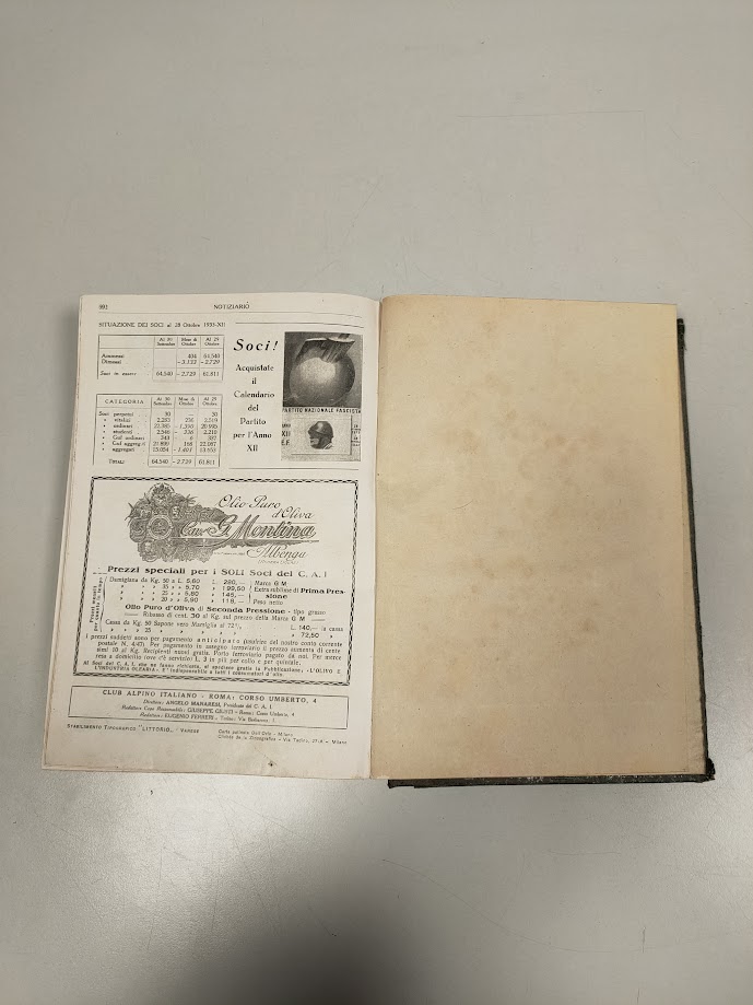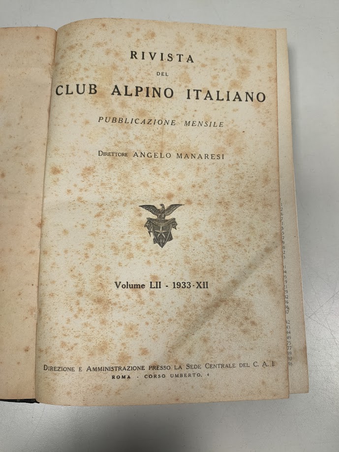 Libro Rivista del Club Alpino Italiano Volume LII 1933 XII in Buone condizioni come da foto
