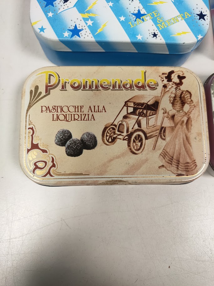 Scatola N°3: Promenade Pasticche alla Liquirizia Lunghezza: 9.5 cm Larghezza: 6 cm Altezza: 2 cm
