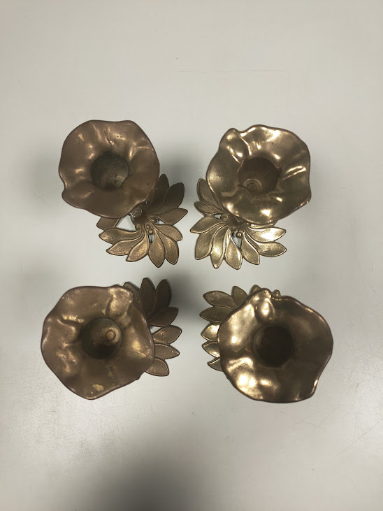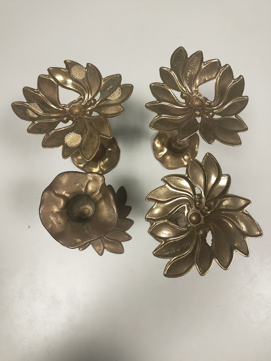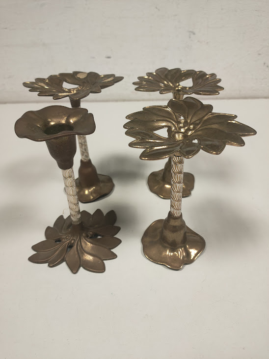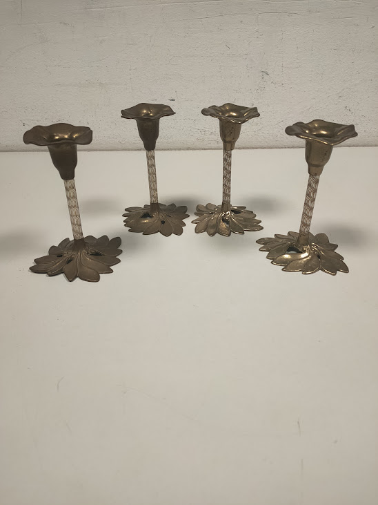 Lotto di 4 Porta Candele in Ottone con Fusto in Metallo “Art Noveau” Vintage Anni ’60 in Buone condizioni come da foto.