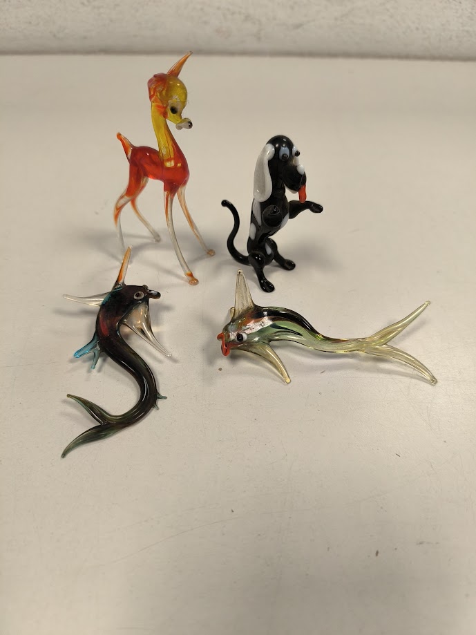 Lotto di 4 sculture in Vetro Soffiato Artisticamente Lavorato in Ottime condizioni come da foto