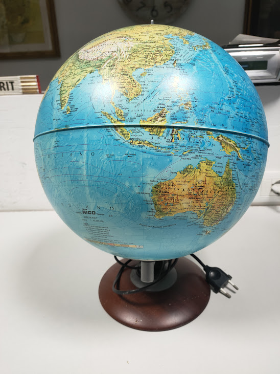 Mappamondo Luminoso “Novarico” in Plastica e Legno Vintage Anni ’80 in Buone condizioni come da foto.