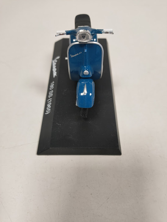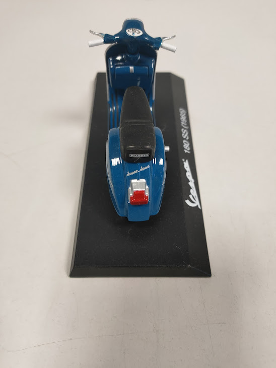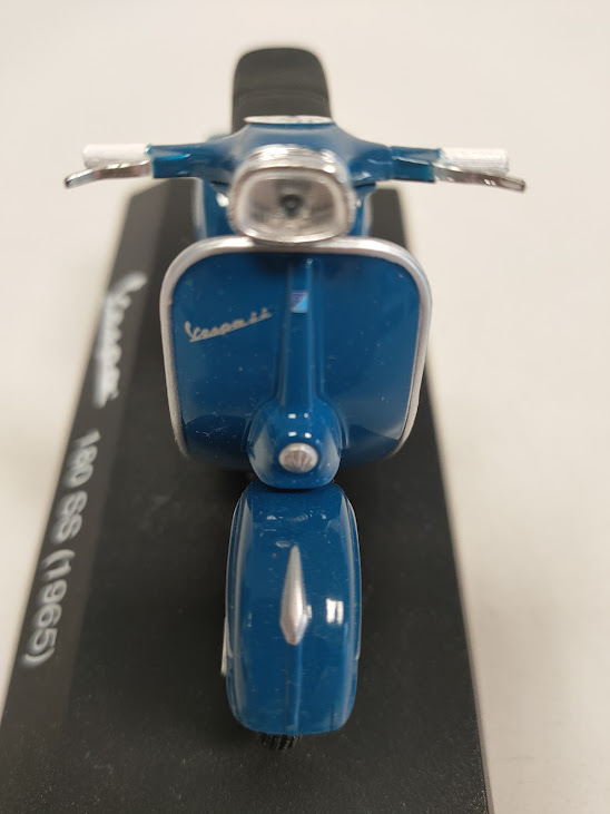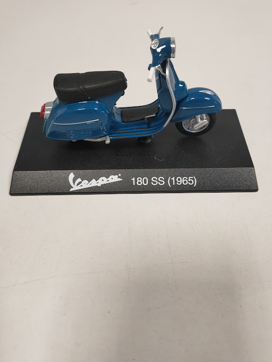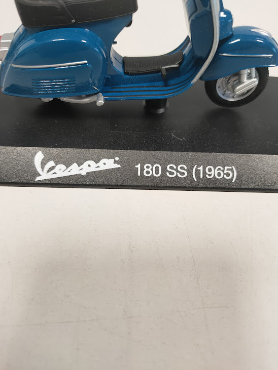 Caratteristiche: Il modello è montato su una base espositiva con la scritta “Vespa 180 SS (1965)”.