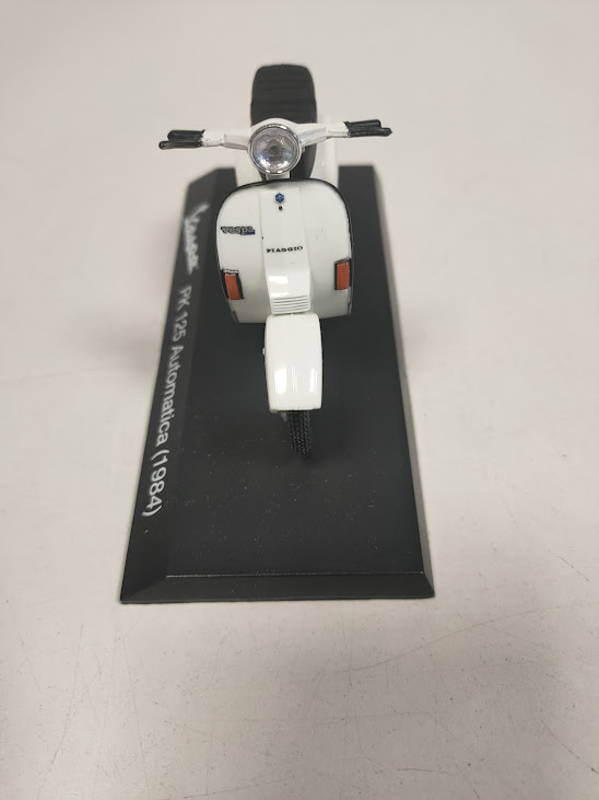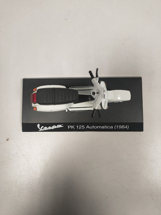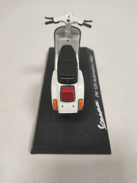 Questo oggetto è un modellino da collezione in scala 1:18 della Piaggio Vespa PK 125 Automatica del 1984, prodotto da Maisto.