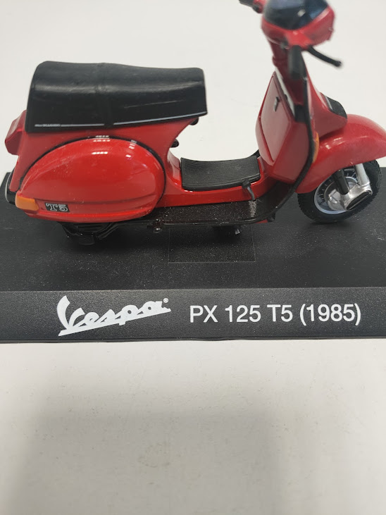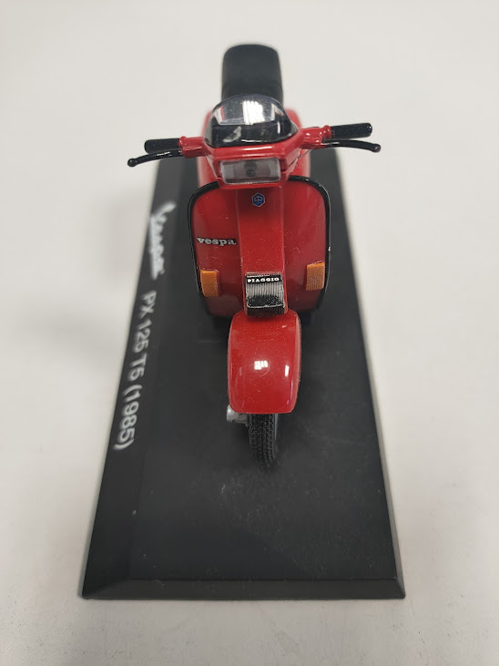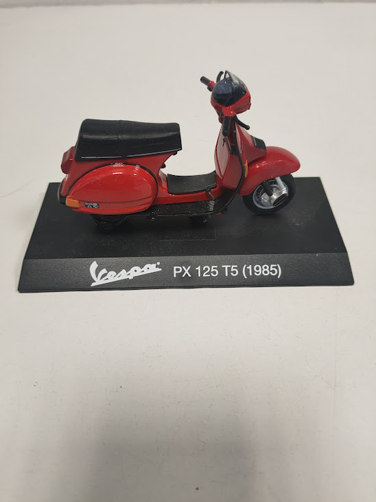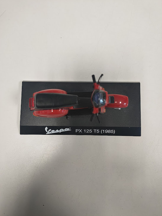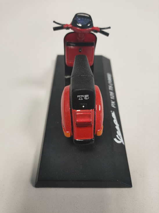 Questo oggetto è un modellino da collezione in scala 1:18 della Piaggio Vespa 125 T5 del 1985, presentata nel classico colore rosso