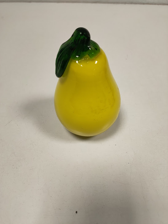 Pera Gialla con Picciolo Verde in Vetro di Murano Realizzato a Mano Vintage in Buone condizioni come da foto