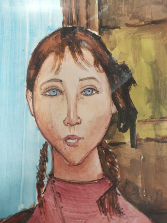Piatto Decorativo in Ceramica Ispirato al Dipinto Ragazza con le Trecce 1918 in Buone condizioni come da foto