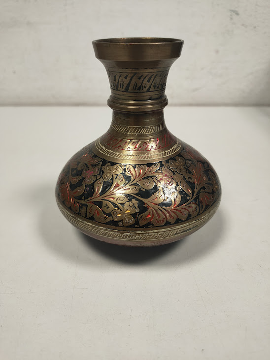 Piccolo Vaso in ottone Inciso di produzione Indiana Vintage in Buone condizioni come da foto