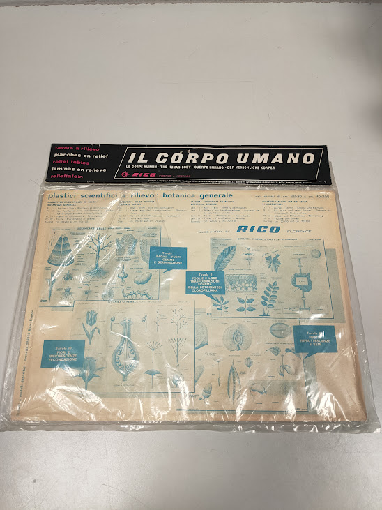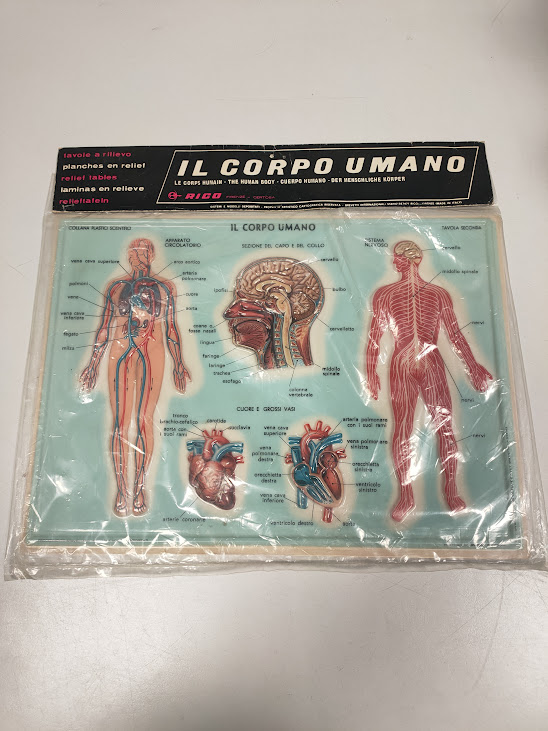 Tavola anatomica con confezione originale. La plastica della confezione presenta segni d’invecchiamento