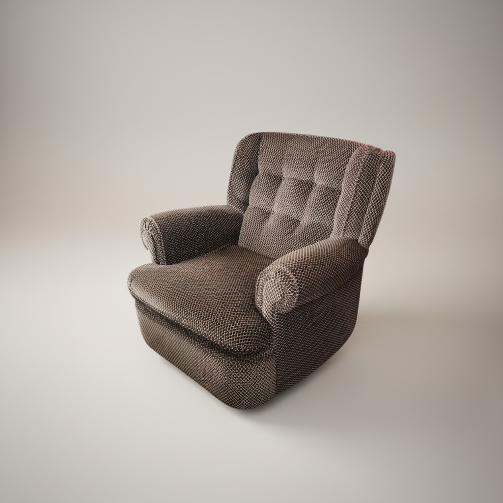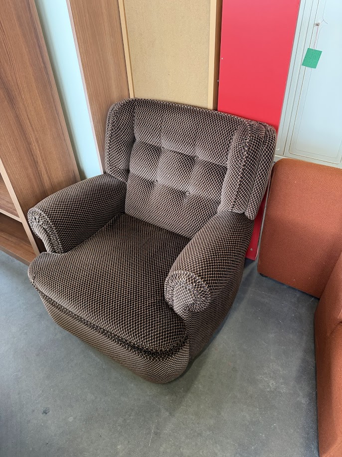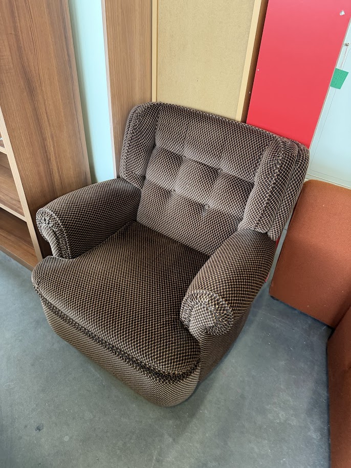 Poltrona imbottita in tessuto marrone piedini legno
