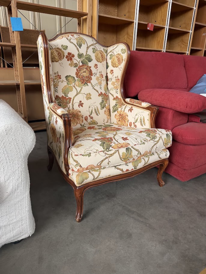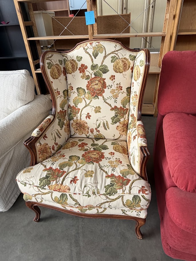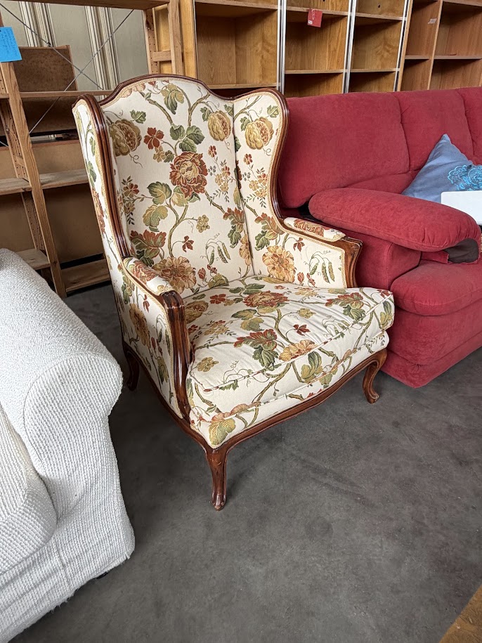 Poltrona mod “Bergere” con stoffa e legno di acero massello