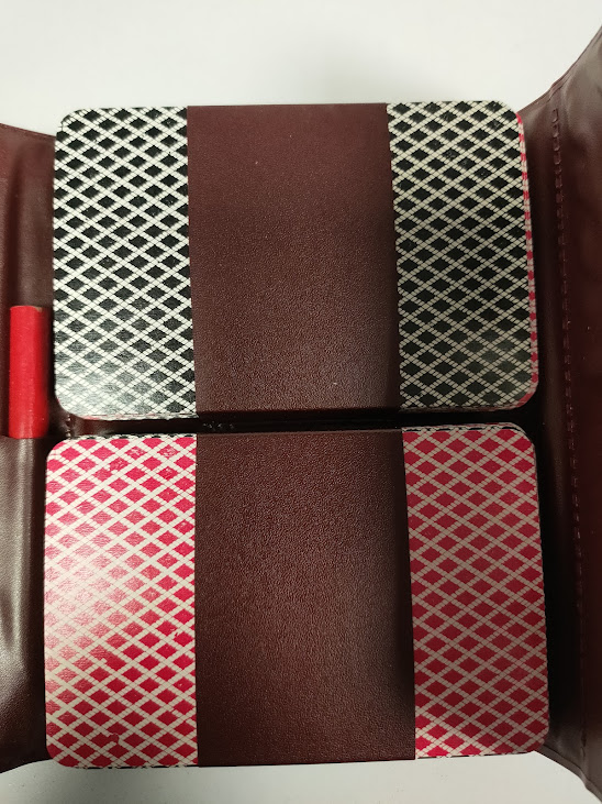 Portacarte in Similpelle “Card Caddy Set” con Due Mazzi per Poker in Buone condizioni come da foto.