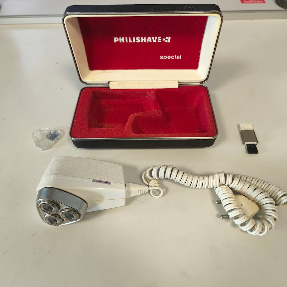 Rasoio elettrico vintage Philips Philishave, completo di custodia originale funzionante, in buone condizioni come da foto.