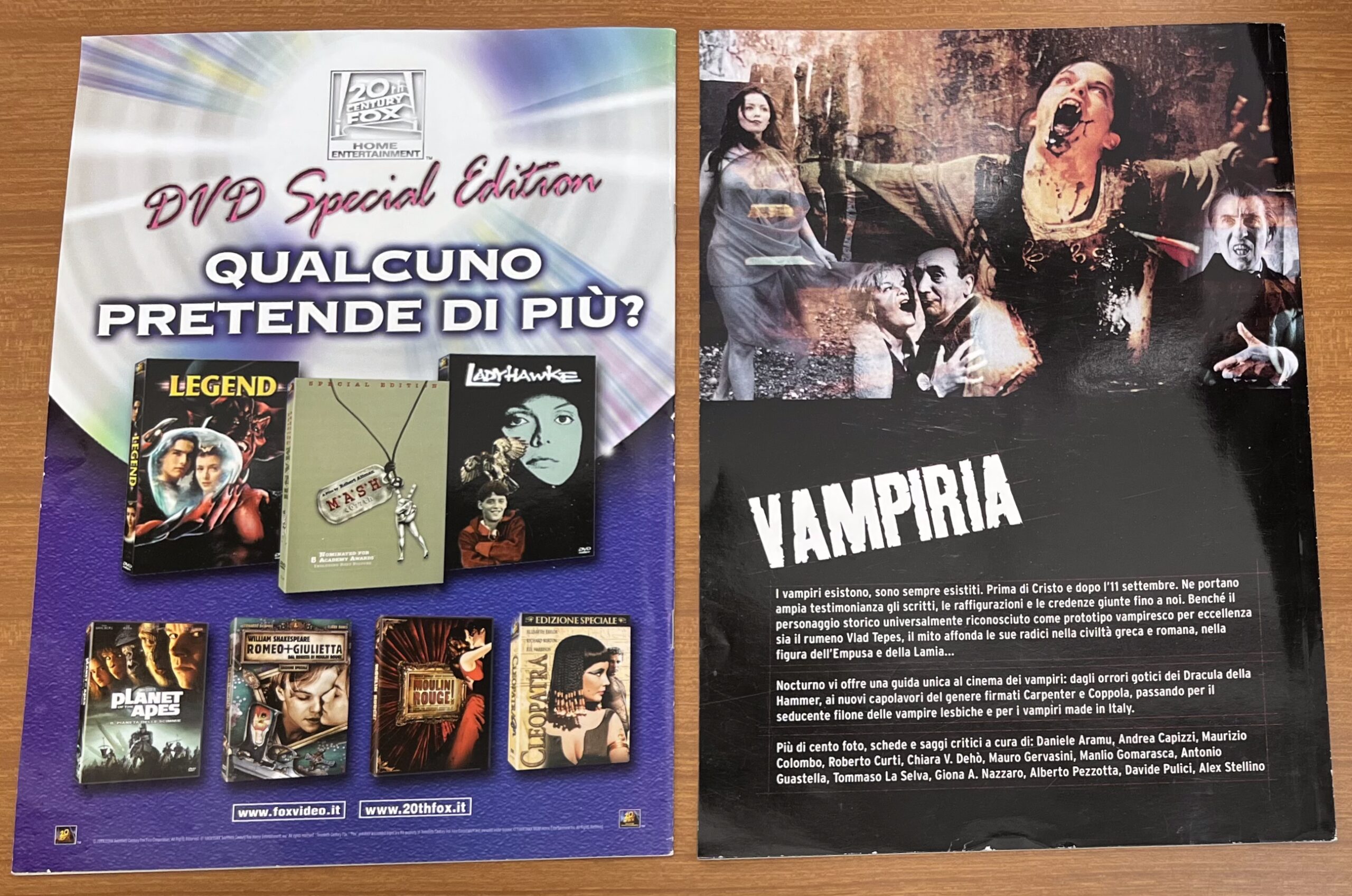 In allegato Dossier “Vampiria : i Dracula della Hammer – il sesso della vampiria – i vampiri italiani – il meglio (e il peggio) dal 1970 a oggi”.