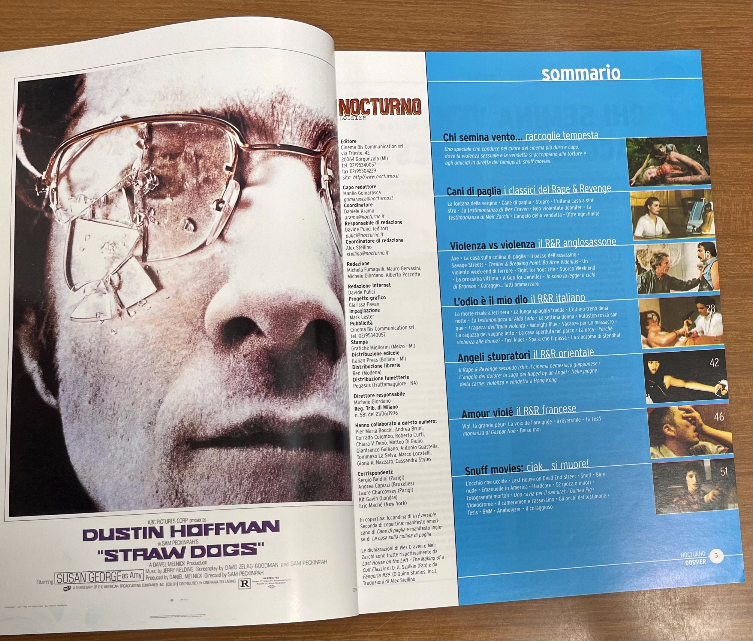 In allegato Dossier “Sesso & Violenza : il cinema della vendetta, da l’ultima casa a sinistra a irreversibile – Snuff Movies : i film sulla morte in diretta”.