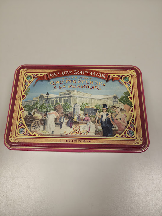 Scatola di Latta Vuota La cura gourmet Biscotto di qualità Les Halles de Paris in buone condizioni come da foto