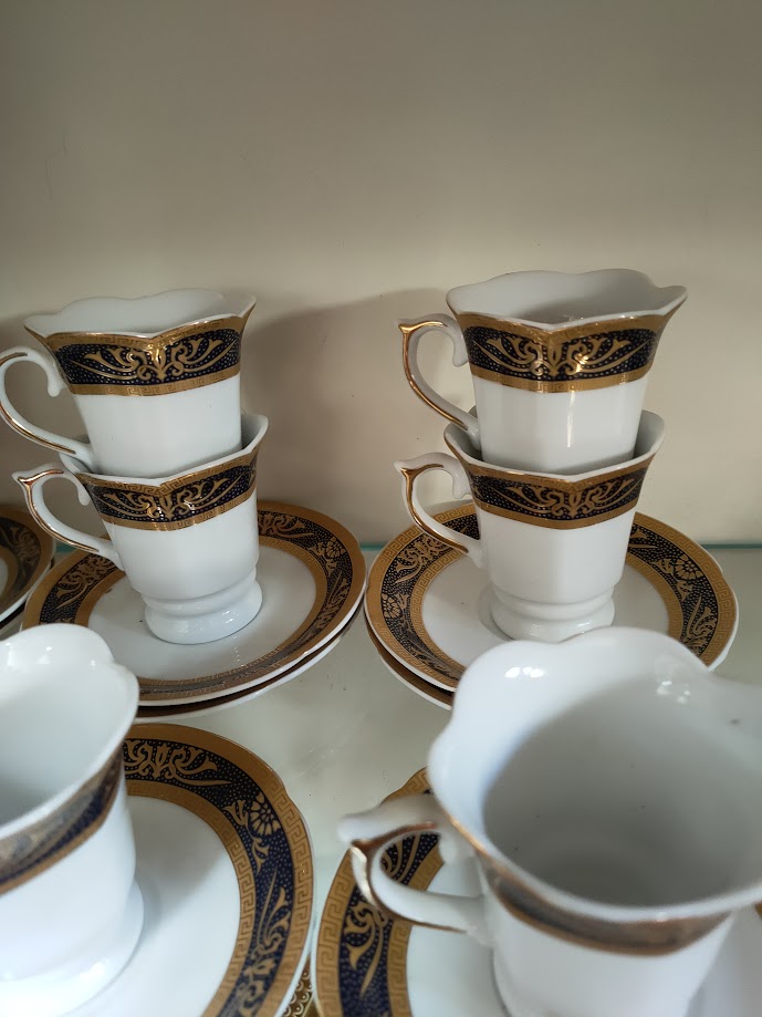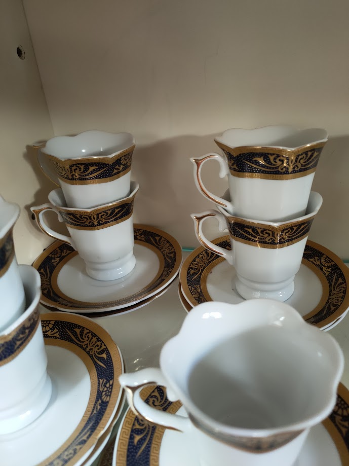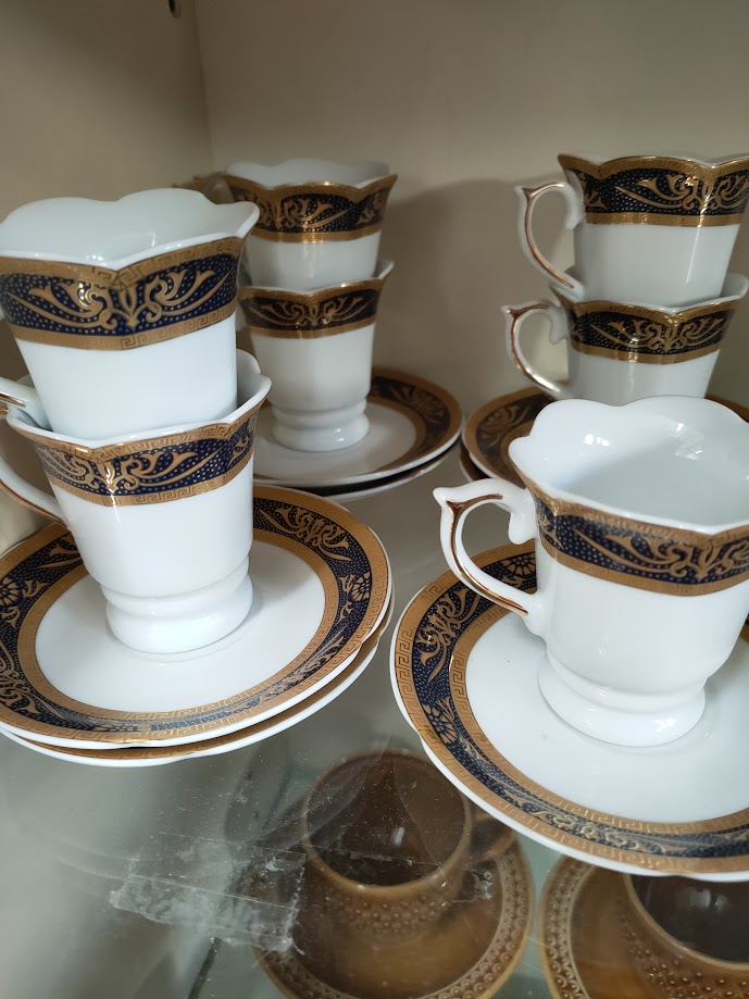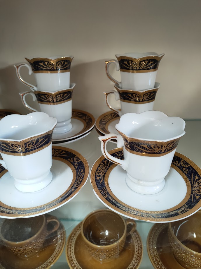 Set di 12 Tazzine da Caffè con Piattini in Porcellana Greca “Dimlaj” in Buone condizioni come da foto