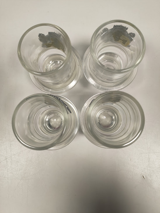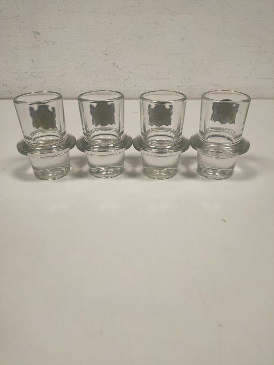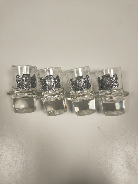 Set di 4 Bicchierini da Collezione in Vetro con Stemma in Peltro in Buone condizioni come da foto