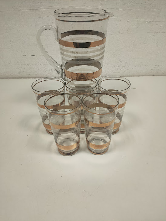 Set Vintage di Caraffa e 5 Bicchieri in Vetro Anni ’50 in Buone condizioni come da foto