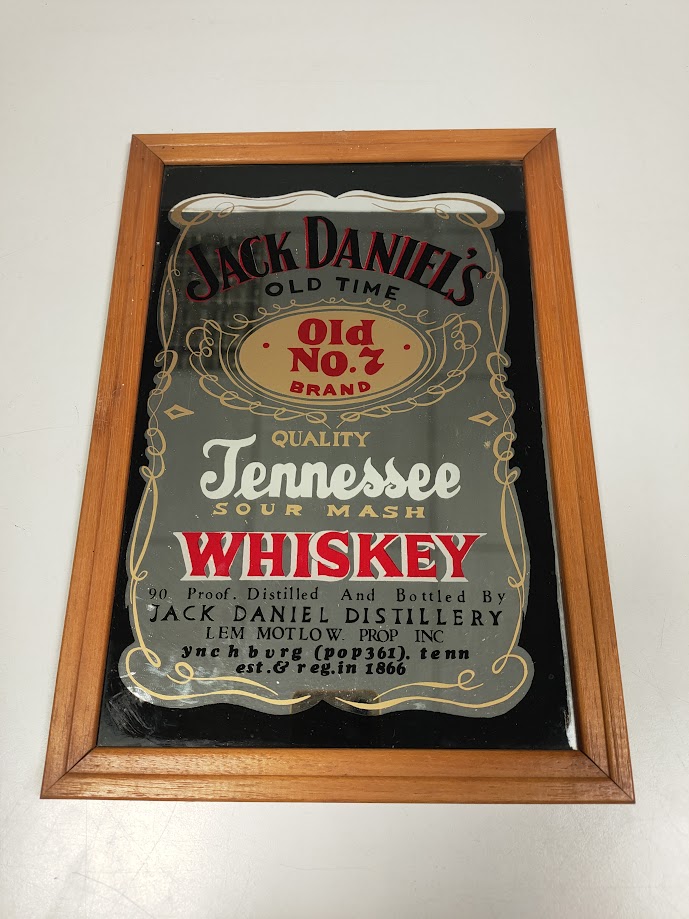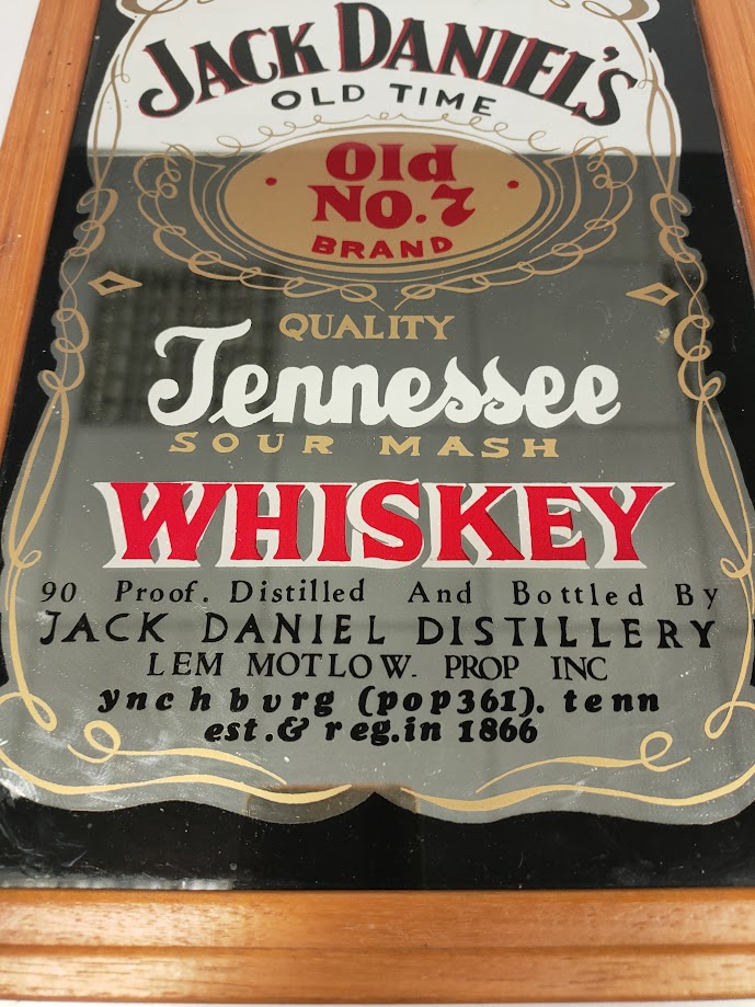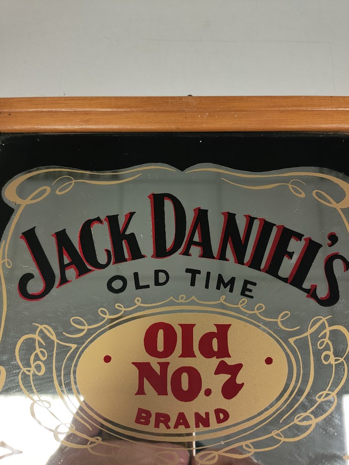 Specchio Pubblicitario con Cornice in Legno “Jack Daniel’s” Vintage Anni ’80 in Buone condizioni come da foto