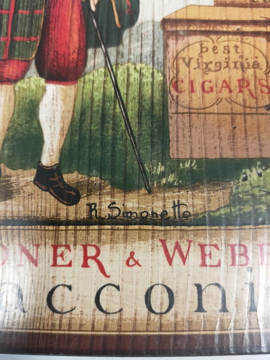 Stampa Antica su Legno di R. Simonetto Gardned e Webb Tobacconist Vintage