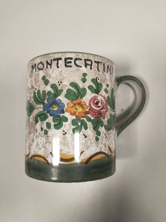 Tazza in Ceramica di “Deruta” Personalizzata con Scritta “Montecatini” Vintage Anni ’70 in Buone condizioni come da foto