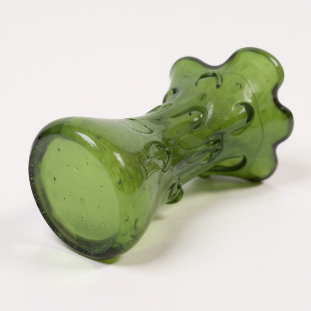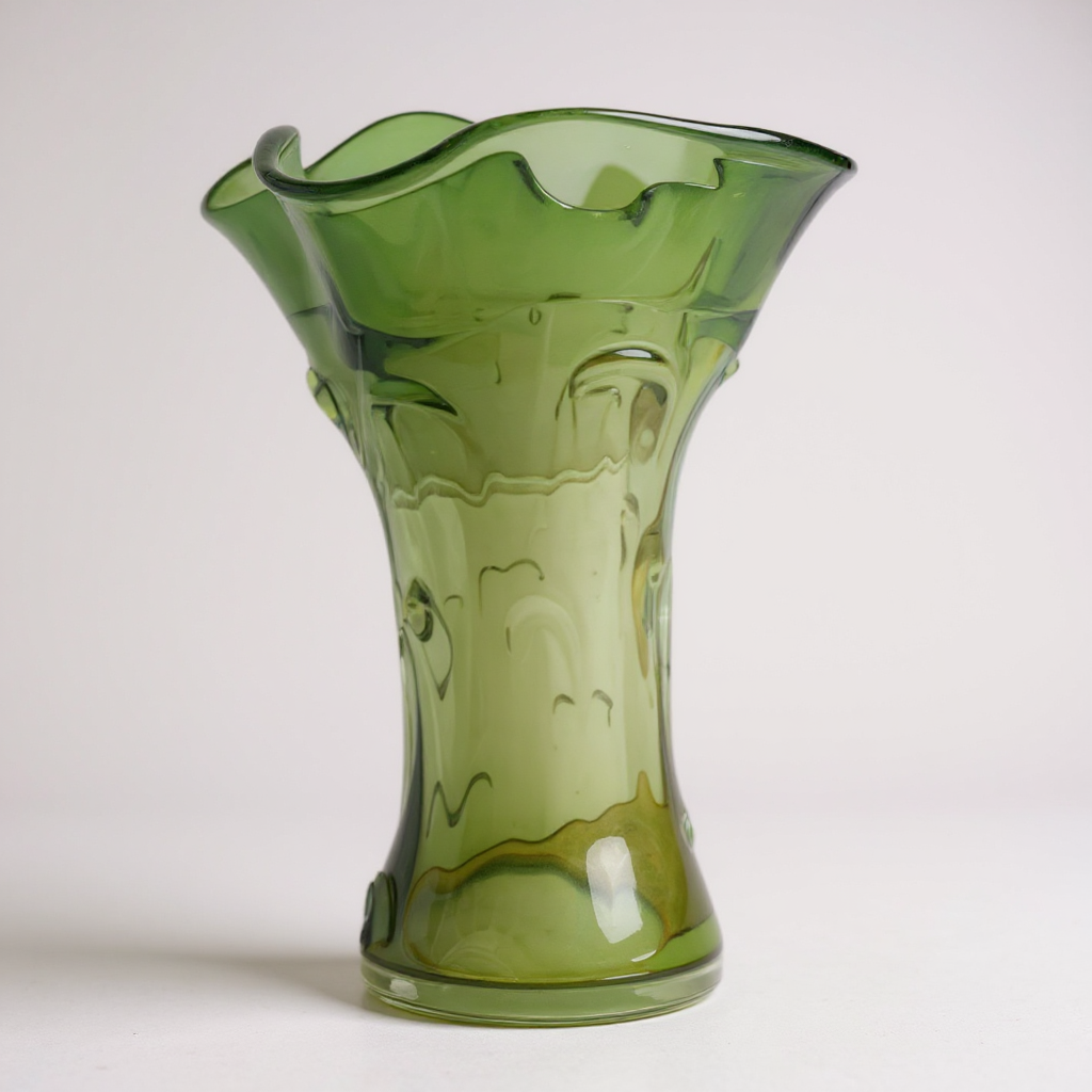 Vaso decorativo in vetro verde soffiato