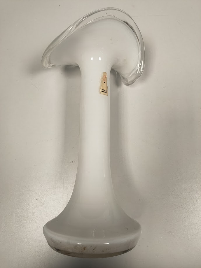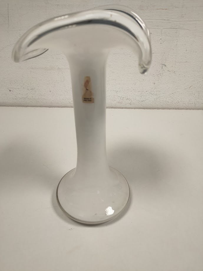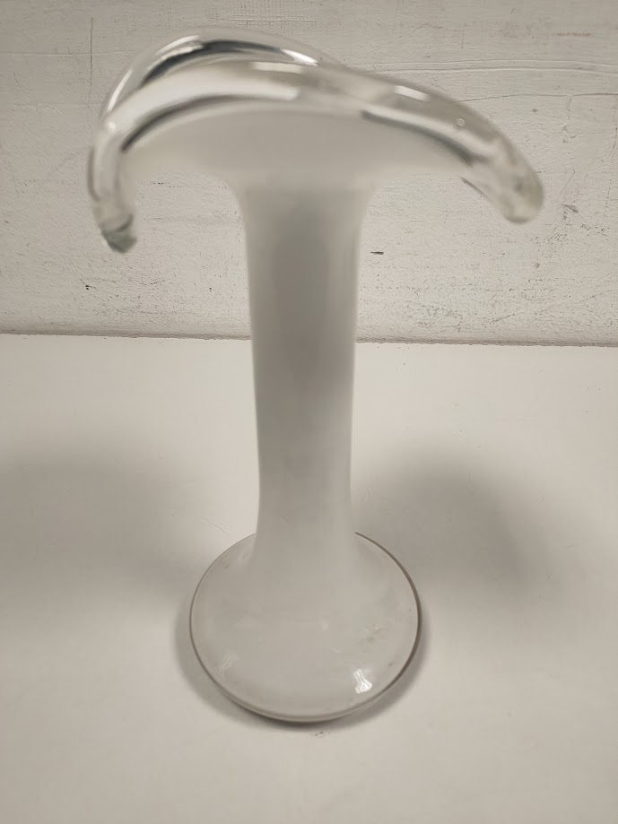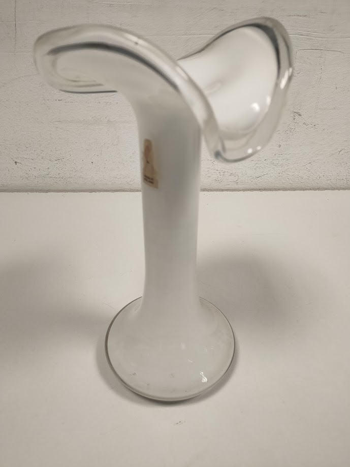 Vaso Porta Fiori in Vetro Bianco Lavorato a Mano “Jerzy Stuczan” Vintage Anni’90 in Buone condizioni come da foto